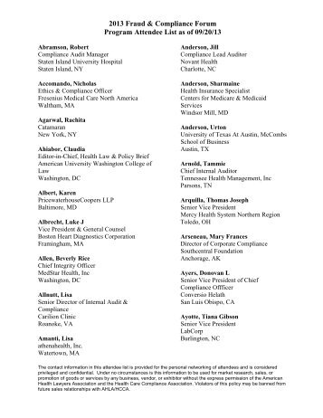 Copyright 2013, American Health Lawyers Association ...